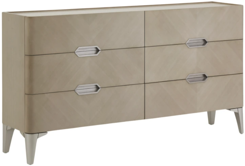 Choose unique. The Penthouse Dresser offers the perfect complement to your bedroom. This dresser features a hidden compartment, a symmetrical veneer on the wood, and metal debossed drawer handles. Elegance at its finest!Read More