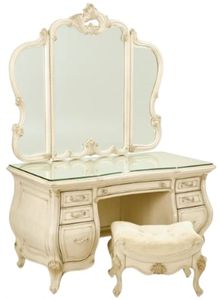 Includes: Vanity/Desk with glass top, vanity mirror and vanity bench
