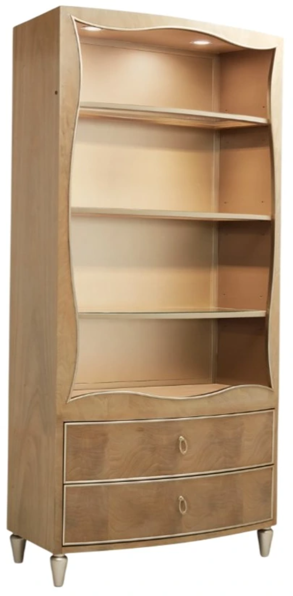 Trim, hoop drawer pulls, and foot accents are finished in Chardonnay