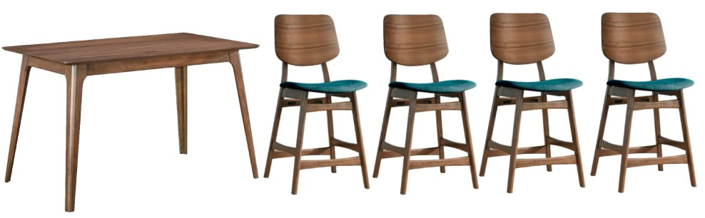 A combination of solid Rubberwood and Walnut Veneers create a curable, long lasting dining table.