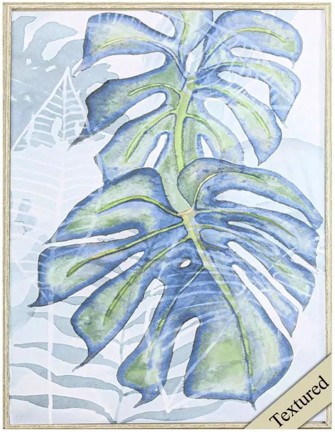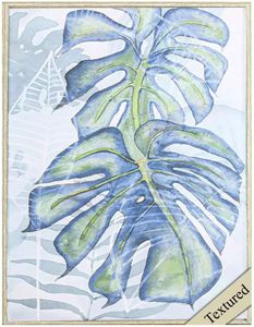 A coastal palm image that is finished with an acrylic overlay. This non glass item is paired with a white wash wood tone textured frame. Whether placed in a living room, bedroom, or hallway, this artwork serves as a versatile accent piece.Read More