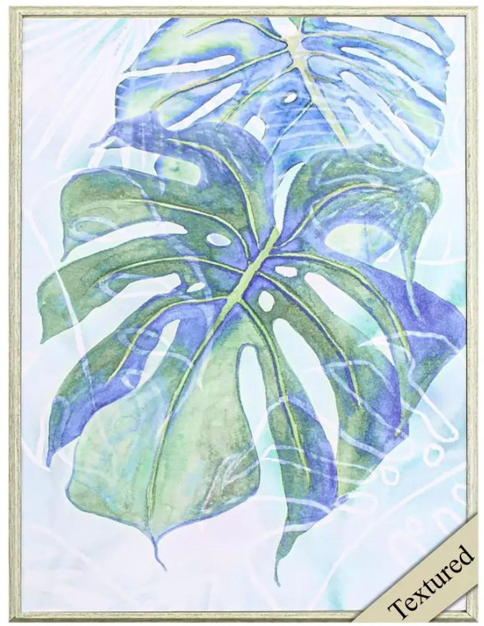 A coastal palm image that is finished with an acrylic overlay. This non glass item is paired with a white wash wood tone textured frame. Whether placed in a living room, bedroom, or hallway, this artwork serves as a versatile accent piece.Read More