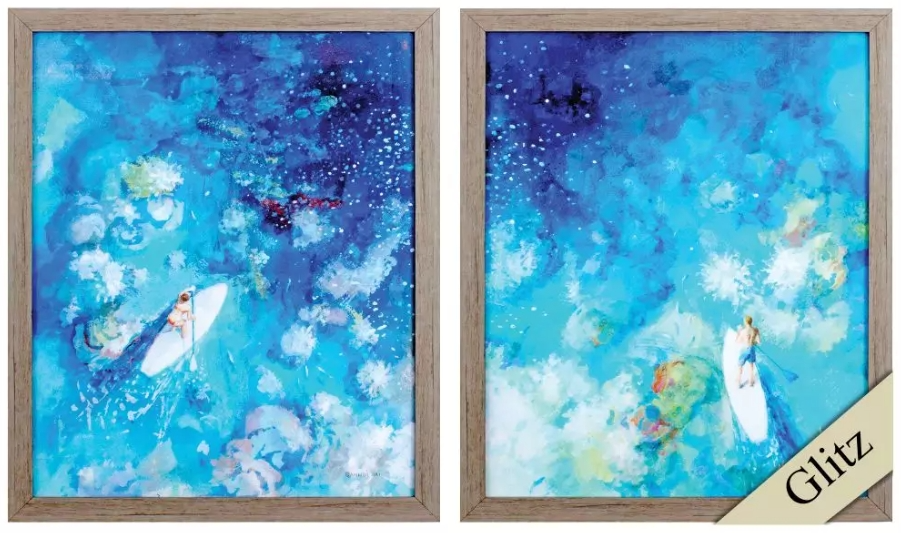 This set of two paddle board explorers is coated with an epoxy resin and complimented with a wood tone frame. Whether placed in a living room, bedroom, or hallway, this artwork serves as a versatile accent piece.Read More