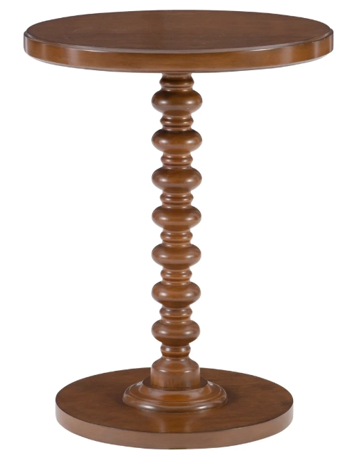 A gorgeous accent table in a rich color that will help liven up your space by adding a bit of elegance. Made from solid wood, it features a sturdy pedestal base with a turned spindle that is complemented by the clean lines of the round tabletop.Read More