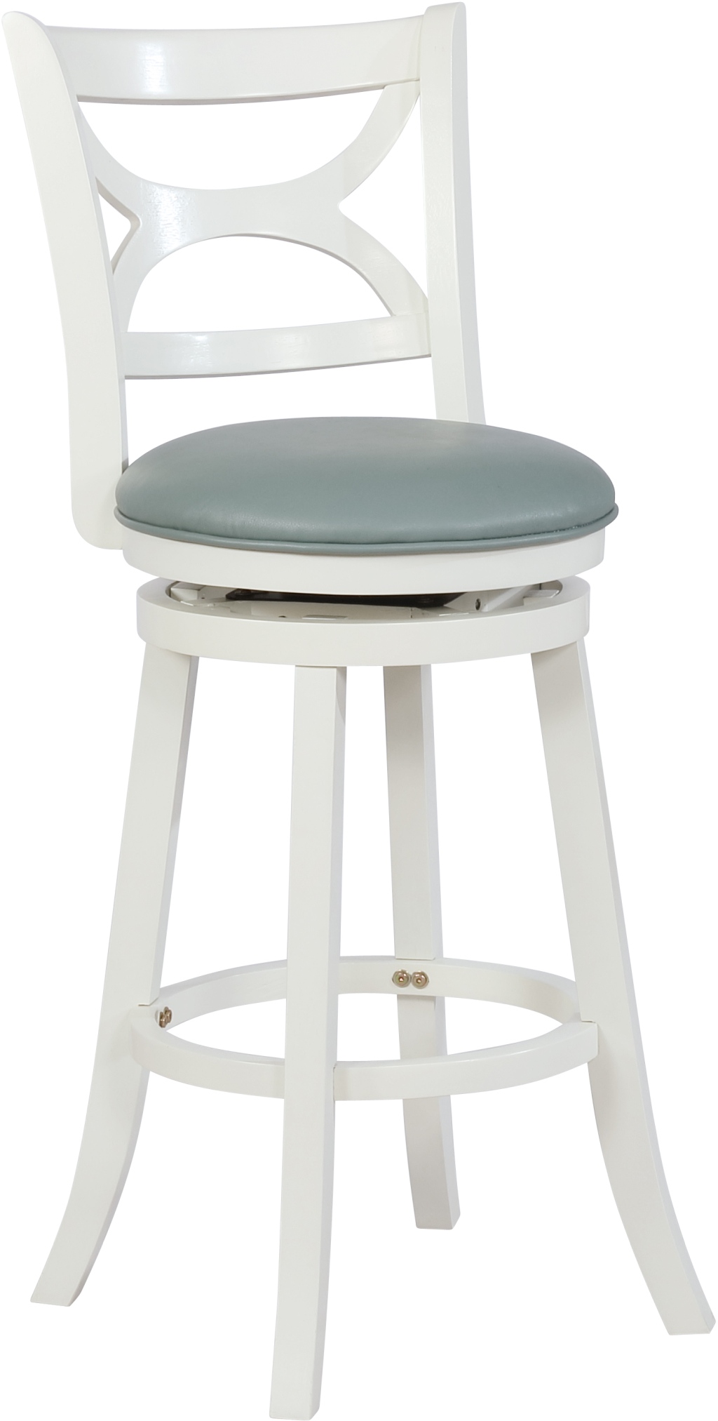 Set the tone in a rustic or coastal cottage living space with this charming wood swivel stool. Offered in multiple height options, the barstool includes a decorative open back design and a footrest for optimal comfort. Its warm cream finish and soft light blue upholstery add the perfect touch of casual refinement.Read More