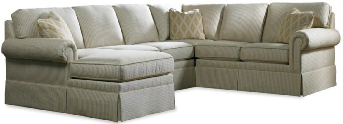 At Sherrill the standard cushion filling is U-D, a high density reinforced urethane core. Also available is Super UD filling, a high resiliency urethane with 2-1/3 ounce fiber. Both cushions are encased in a sewn casing. Other cushion filling options are spring-down, comfort-down and comfort-fiber. Sherrill offers loose pillow back options fiber-down and Shertrel (standard).