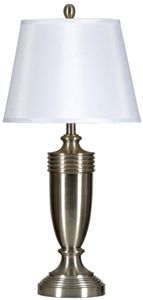 StyleCraft Pair Of Steel Table Lamps with brushed steel and white hardback linen shadesRead More