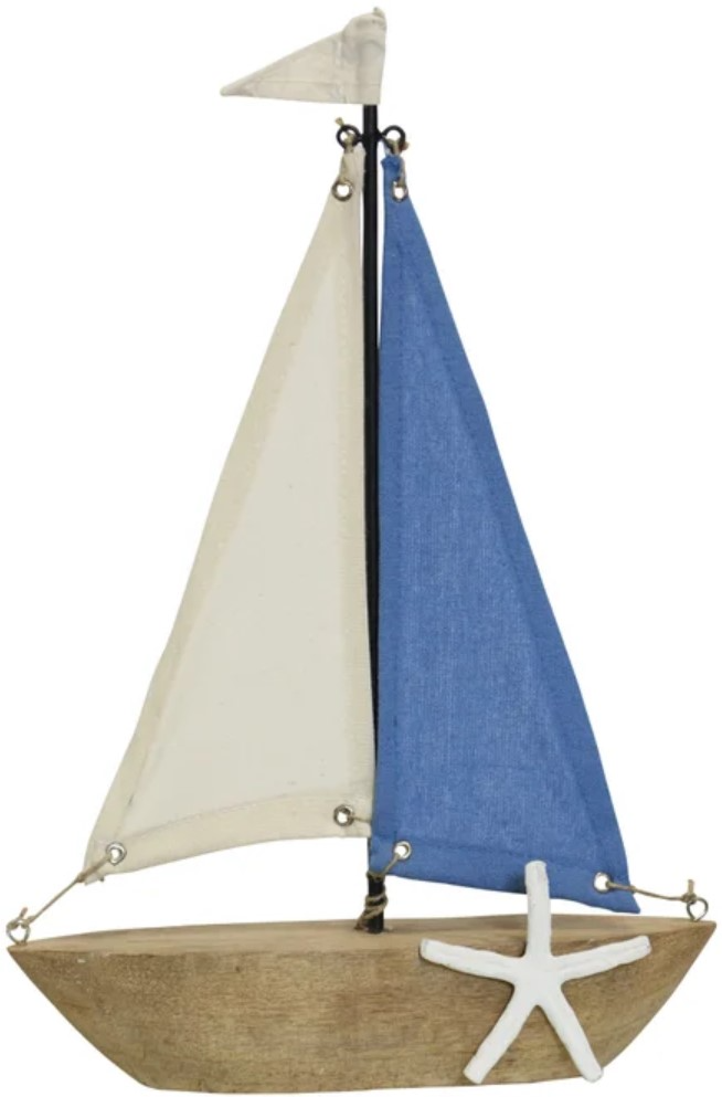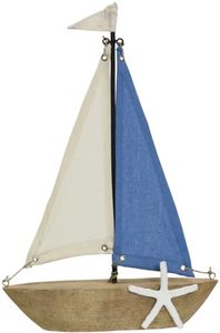 Bring breezy coastal style to your décor with the Nautical Blue Sail Boat Canvas. Featuring a sailboat motif on canvas set within a solid mango wood tabletop frame, this accessory blends seaside charm with natural texture—perfect for shelves, consoles, or nautical-themed spaces.Read More