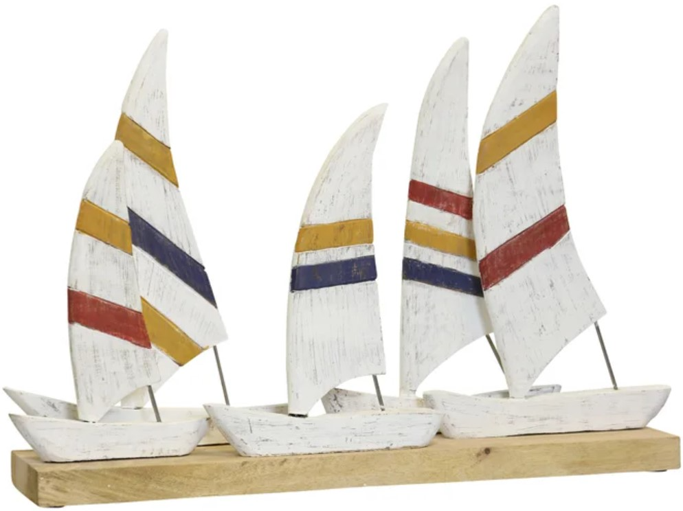 Bring breezy coastal style to your décor with the Nautical Race Sail Boat Canvas. Featuring a sailboat motif on canvas set within a solid mango wood tabletop frame, this accessory blends seaside charm with natural texture—perfect for shelves, consoles, or nautical-themed spaces.Read More