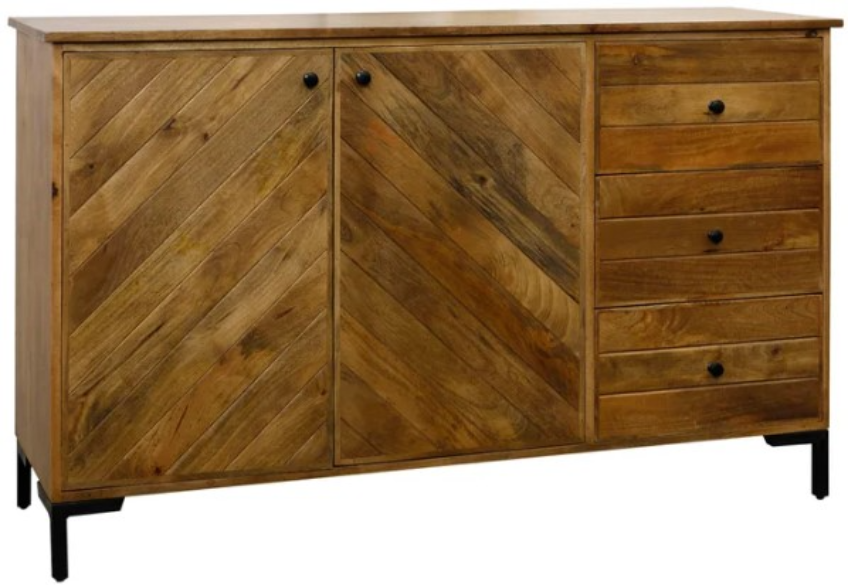 Elevate your dining or living room with this Stylecraft Light Brown Sideboard. Features a plankwood two doors, three drawers, and solid mango wood shown in light brown color. It's a statement piece and storage for your room.Read More