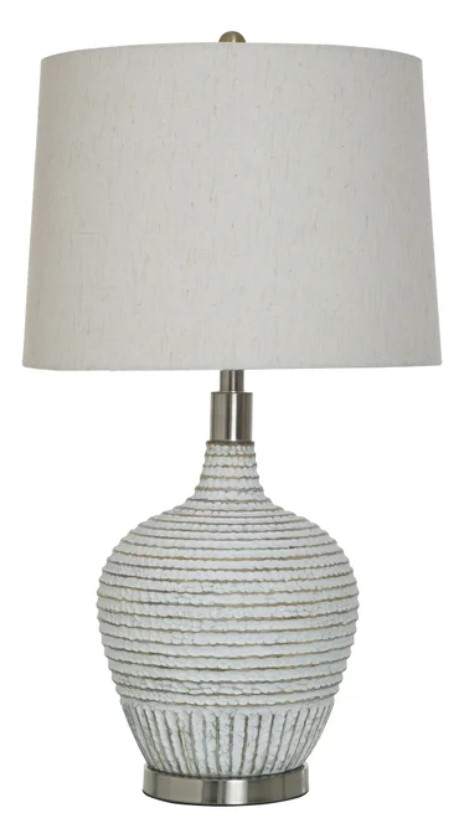 Illuminate your space with the Ridged White Wash Table Lamp. Its textured ridged design adds visual interest and character to any room, while the white wash finish brings a touch of coastal charm. This lamp effortlessly blends style and functionality, making it a versatile addition to your decor scheme.Read More
