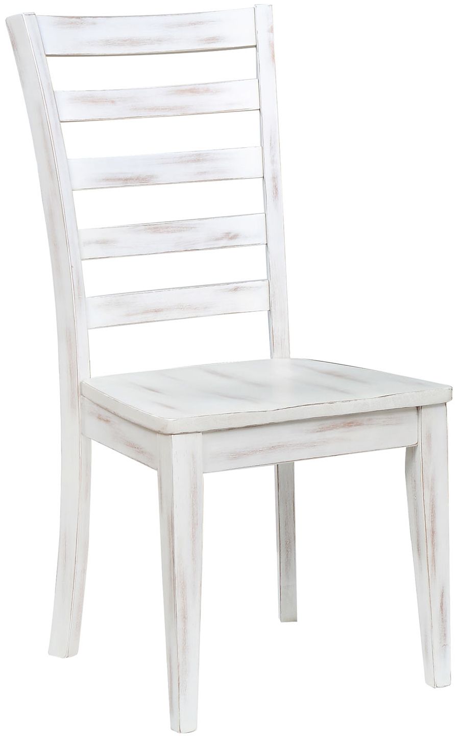 The Winners Only® Prescott Straight Ladder Back Side Chair is built out of solid hardwood and features a burlap and distressed white finish.Read More